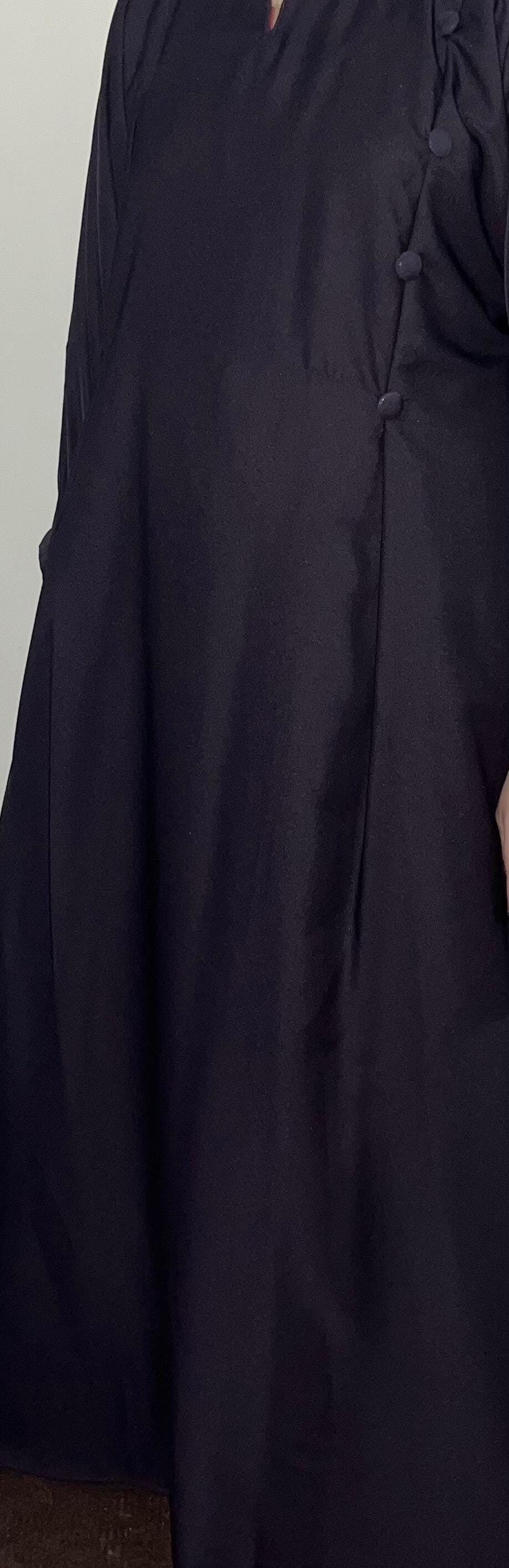 This plum A-line abaya blends simplicity and sophistication with its clean silhouette and button-accented shoulder design. The soft, flowy fabric and matching hijab make it perfect for both casual and formal occasions.