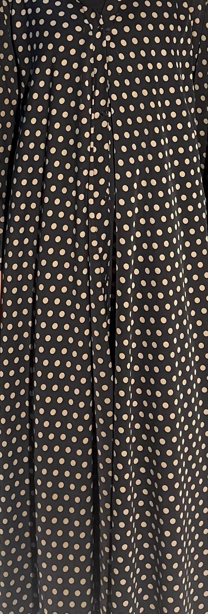 Step into elegance with this chic black polka dot abaya, designed to give you a timeless and effortlessly stylish look. Its button-down front and soft flowy fabric allow easy movement while maintaining complete modesty. The beige polka dots add a classy visual appeal, making this piece perfect for everyday wear, gatherings, and office style. Pair it with a black hijab and heels for a polished, confident appearance